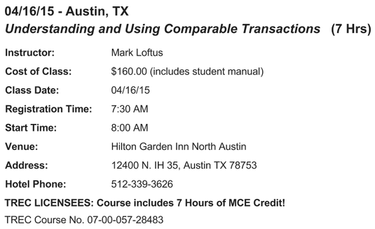 Mark Loftus is one of the few AQB Certified USPAP Instructors in the country to have been a full-time investigator for a state appraiser board (TALCB). He has investigated hundreds of complaints, and each included reviewing appraisal reports for violations of USPAP.